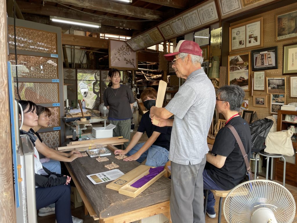その後、舟木木工所を訪れ、伝統工芸である「組木細工」の製作現場を見学。実際に組み立てを体験しながら、その緻密さや、伝統を守り続けること、継承の難しさを体感しました。あわせて、失敗を恐れず挑戦し続ける姿勢の大切さにも触れる機会となりました。