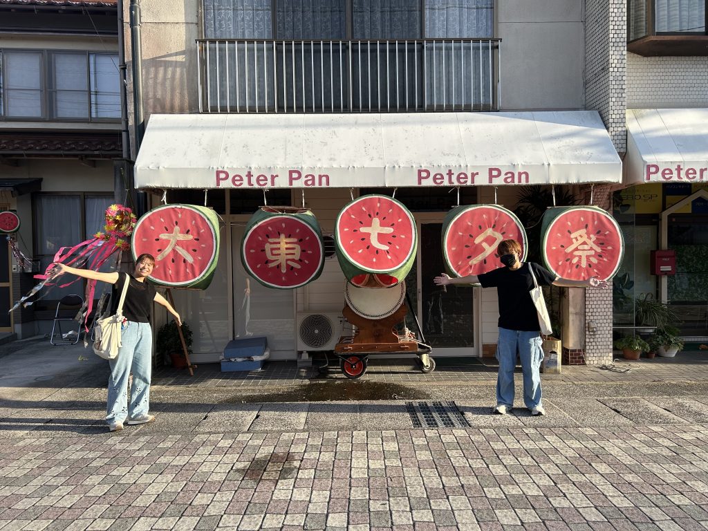 夕方からは大東七夕まつりへ。偶然にも大東七夕まつりの開催日と重なったラッキーな2025年度のzemi合宿メンバーは地元商工会青年部の皆さんに教わりながら、運営スタッフとして関わらせていただきました。祭りや花火を楽しむ中で、地域の行事が生み出す人のつながりや、関わりしろの広さを実感しました。